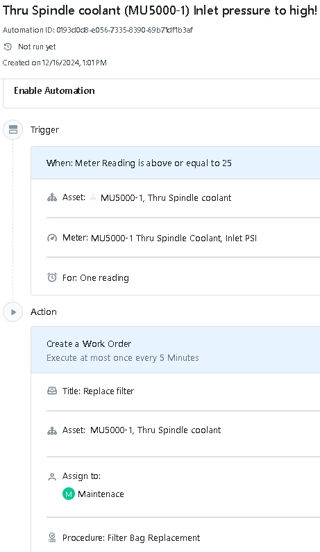 I find that there are not enough options in the condition-based maintenance or automation options. This is one way I used the condition based maintenance that works well.